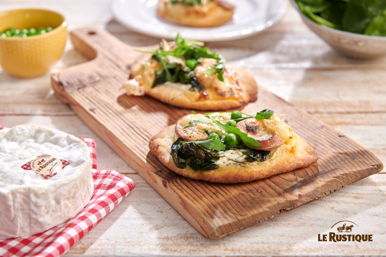 Minipizzen mit Camembert Le Rustique und grünem Gemüse